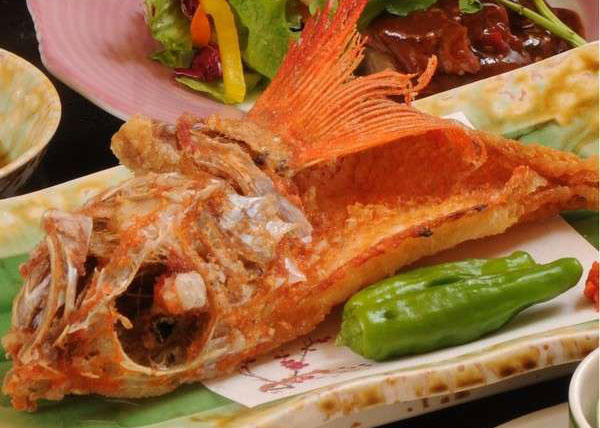 鮮炸吉次魚匠之膳:旅舘一乃松最高等級的料理魚骨酥脆、魚肉多汁,是一乃松的招牌料理。