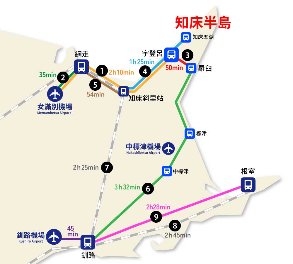 ❶【女滿別機場⇔綱走⇔宇登呂】斜里巴士:知床機場大巴