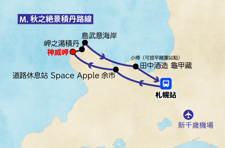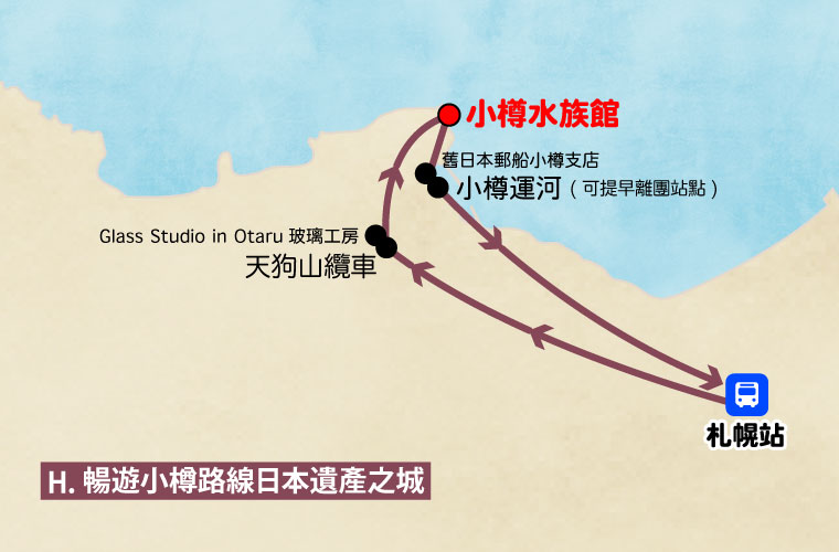 札幌站 / 8:40出發、18:33回程抵達(小樽站 / 17:20回程抵達 ※僅供下車)