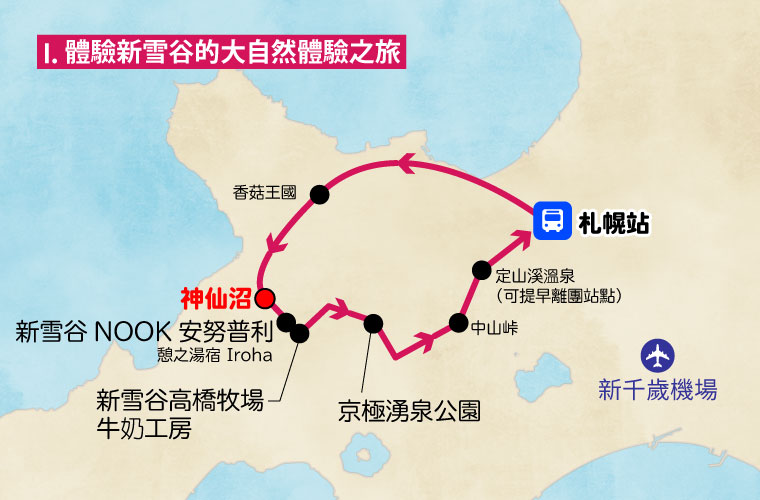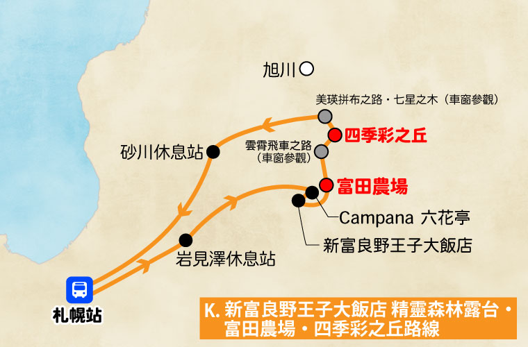 • 請於乘車路線出發20分鐘前,前往札幌站西候車區北口前(計程車乘車處西側)視窗,出示信用卡支付完成郵件或通知內容的手機畫面,兌換定期觀光巴士車票。