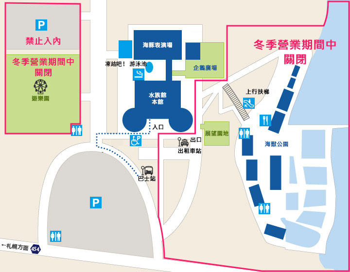 位於北海道的西部,從札幌乘車約需1小時的地方。水族館面向日本海,周圍大自然環抱,位置極佳。