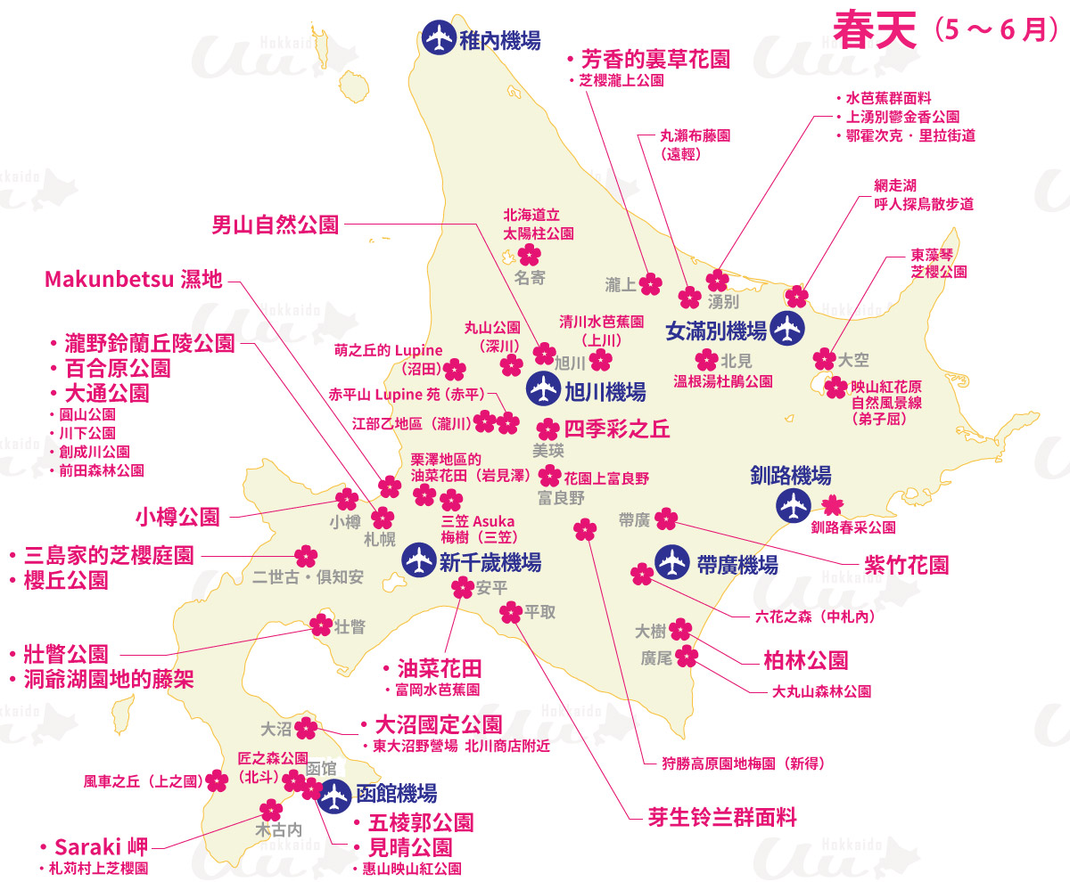 是代表北海道初夏的花之一,香味很好的像小铃铛一样的花很受欢迎。特别是平取町的群生地,幌尻岳山脚下广阔的野生雀群生地,约15ha,是日本第一大。